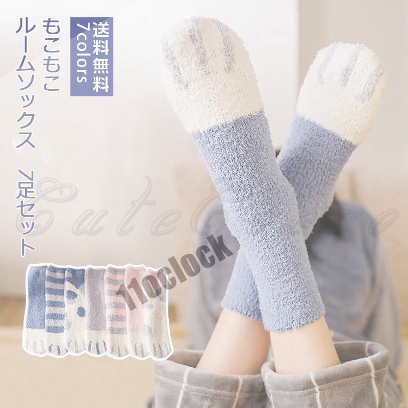 ルームソックス ボア靴下 レディース 7足セット もこもこ 可愛い猫爪 ブランケットソックス ホームカバー 暖かい 防寒 冷え取り 秋冬 おしゃれ