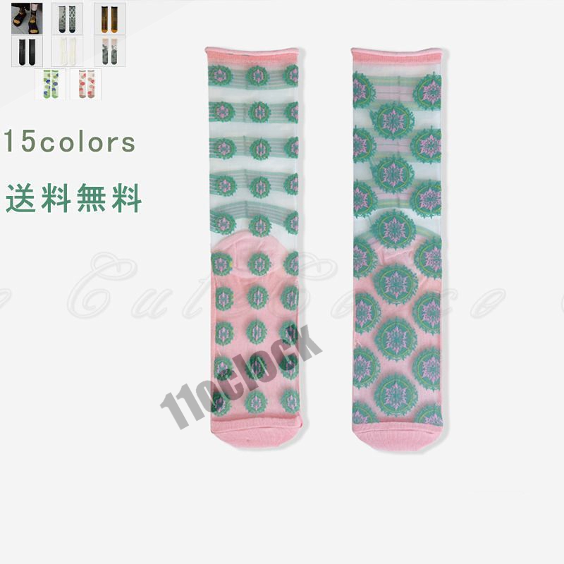 靴下 レディース ソックス くつした 透明 植物 ストライブ カジュアル 春夏秋冬 おしゃれ かわいい 保温 蒸れない 暖かい 高校生