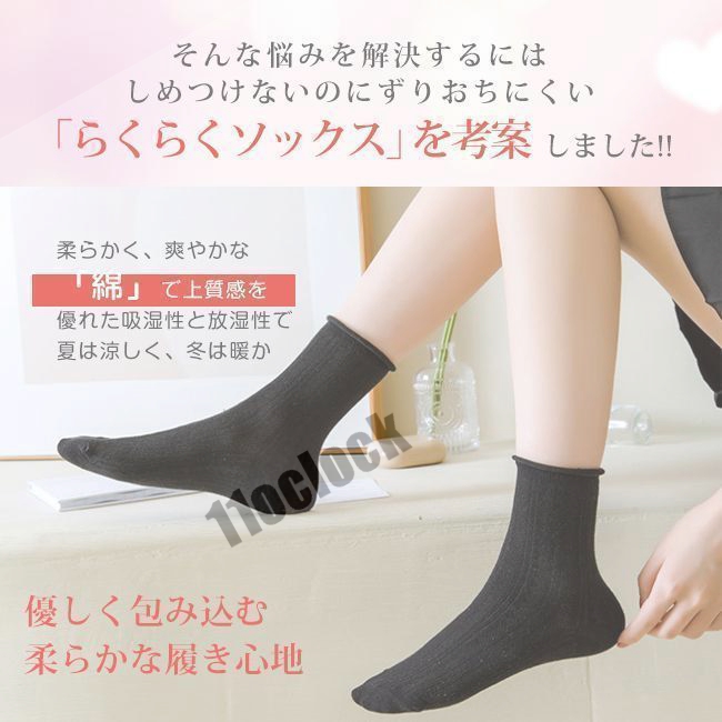 履き口ゆったり らくらくソックス しめつけない 靴下 5足セット クルーソックス レディース コットン 綿 ゆる 女性 ゆったり ゆるい 冷え対策 ソックス