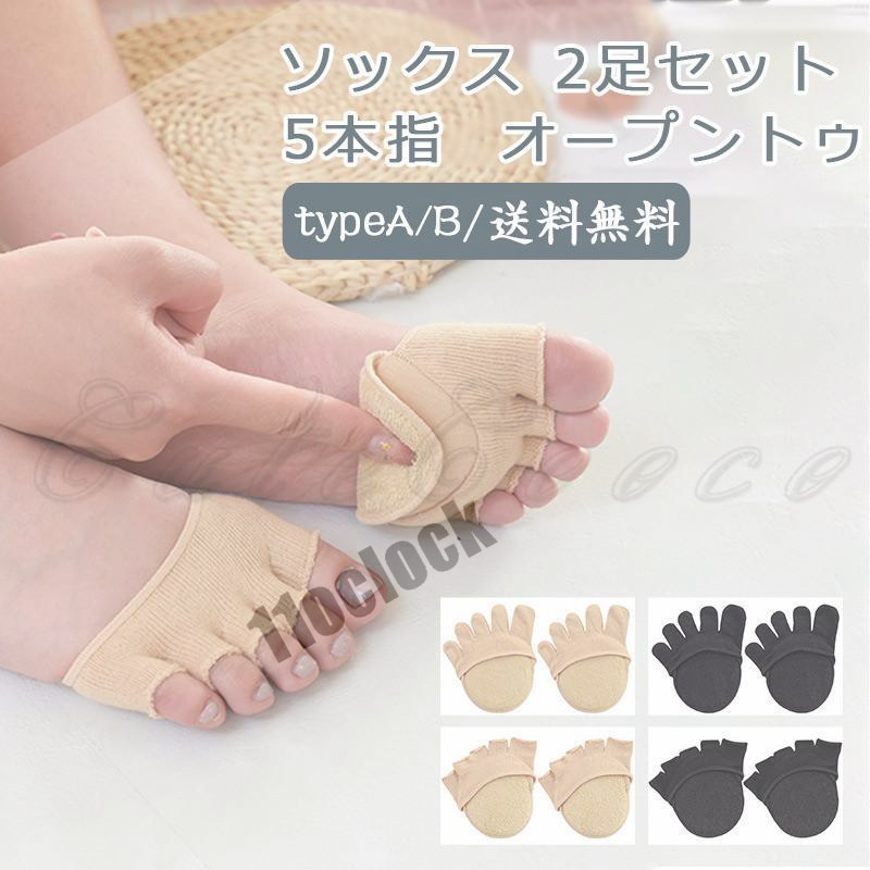 オープントゥ 5本指 ソックス 2足セット スポンジパッド付き 滑り止め 吸汗性 通気性 インナーソックス フットケアー 温活 おしゃれ