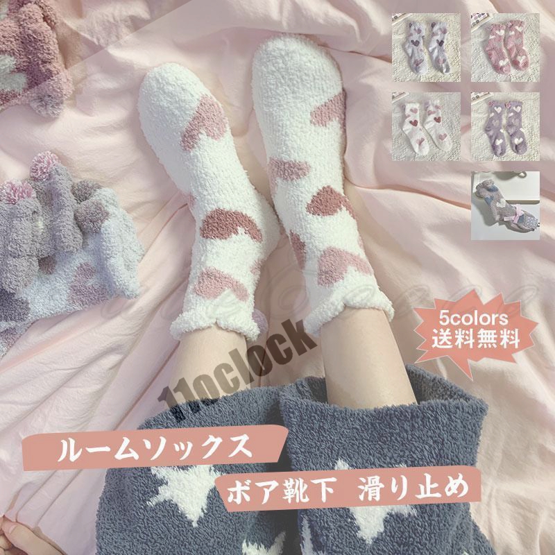 ルームソックス レディース ボア靴下 ハート柄 ポンポン付き 滑り止め 厚手 伸縮性 防寒 冷え取り 暖かい 可愛い 履き心地良い 秋冬 おしゃれ