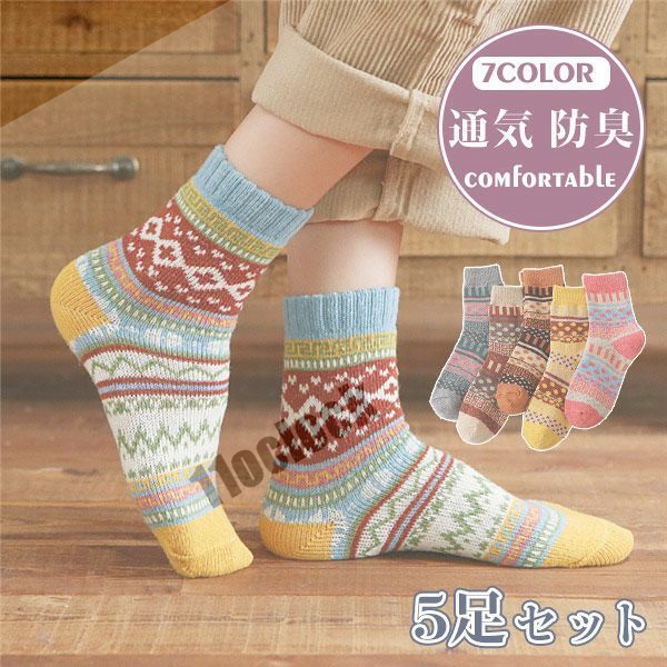 靴下 ソックス レディース 5足セット カラフル レトロ 蒸れない 女の子 可愛い 防臭 抗菌 アウター プレゼント