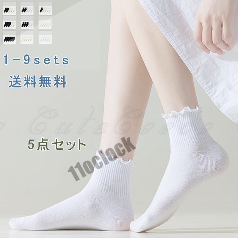 靴下 5足セット レディース ソックス くつした カジュアル フリル 春夏秋冬 おしゃれ かわいい 保温 蒸れない 暖かい 冷え対策 ゆったり