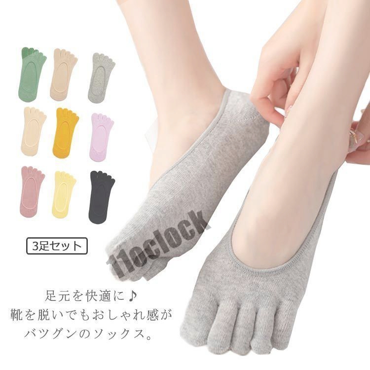 靴下 5本指 レディース フットカバー 脱げない 女性用 カラフル 薄手 くるぶし 5本指ソックス 滑りにくい 春夏 パンプス 3足セット お洒落 送