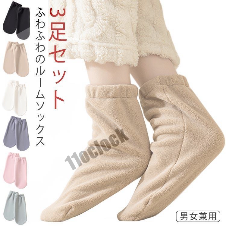 ルームソックス 靴下 あったか 3足セット ルームソックス 滑り止め 就寝ソックス 室内 防寒 厚手 もこもこ靴下 無地 冬 グッズ レディース 裏起