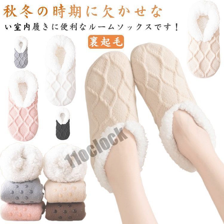 レディース もこもこ 部屋用 ソックス ふわふわ 靴下 ルームソックス あったか 滑り止め 保温 防寒対策 厚手ソックス 暖かい 裏起毛 室内履き 秋