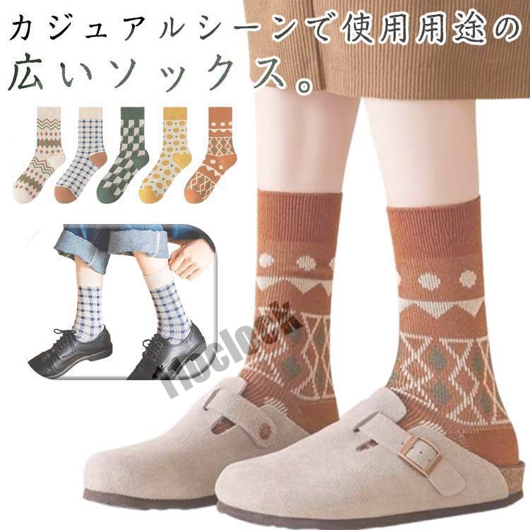 コットン 韓国 かわいい クルーソックス リブ 靴下 レトロ クルー丈 スポーツ スニーカーソックス カラーソックス レディース シンプル 5足セット