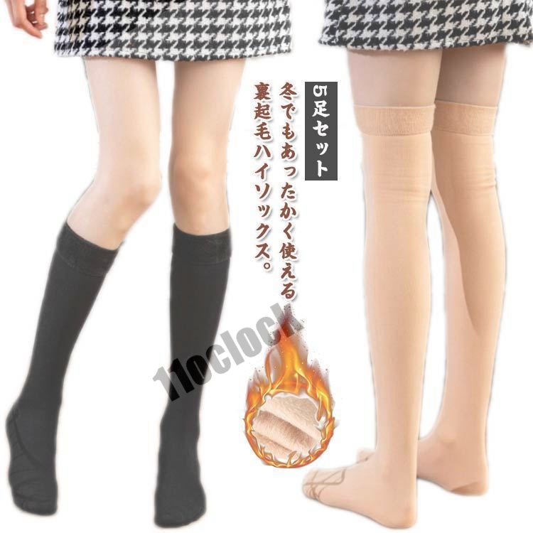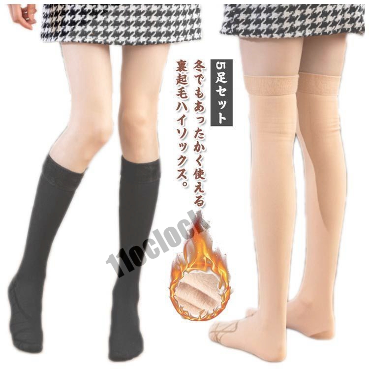 ハイソックス もこもこ ニーハイソックス 靴下 ブラック ソックス 裏起毛 レディース オーバーニーハイソックス 5足セット ストッキングソックス 対
