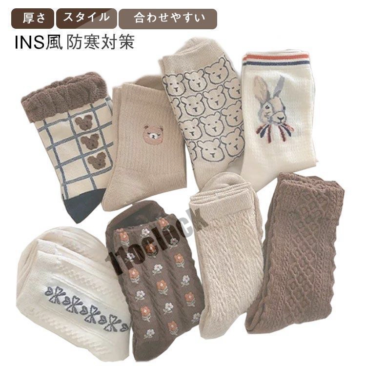 レディース 靴下 クルーソックス ソックス くまちゃん 花柄 カジュアル靴下 秋冬 暖かい 女性用 防寒対策 大人可愛い 女性 吸汗 学生