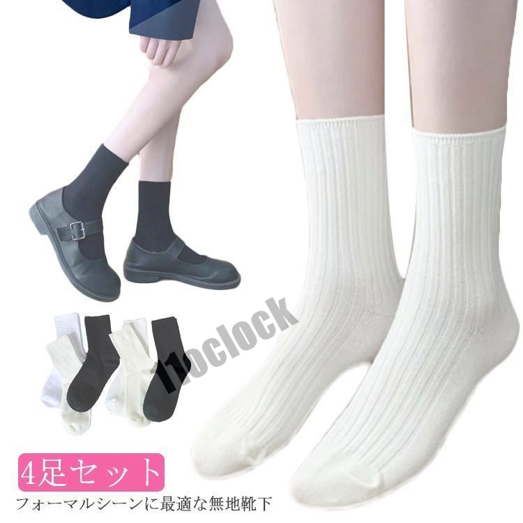 靴下 レディース クルーソックス 4足セット コットン ソックス くつ下 無地 おしゃれ 可愛い 春 秋 冬 蒸れない 快適 フォーマル
