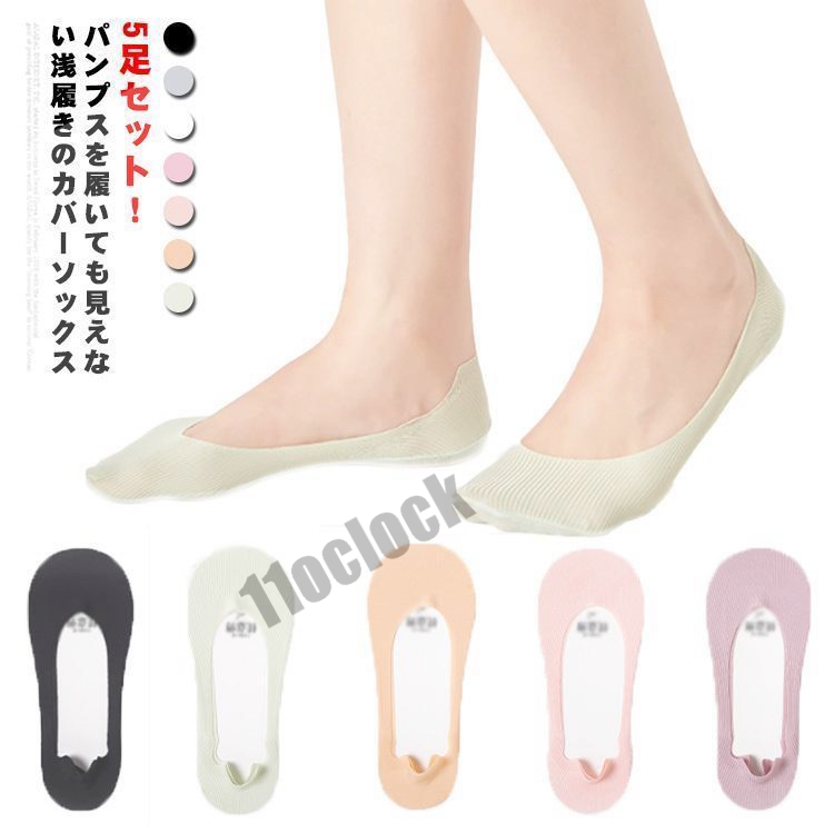 フットカバー 5足セット 靴下 浅履き レディース カバーソックス ソックス 冷感 滑り止め 脱げない 薄手 無地 パンプス お洒落