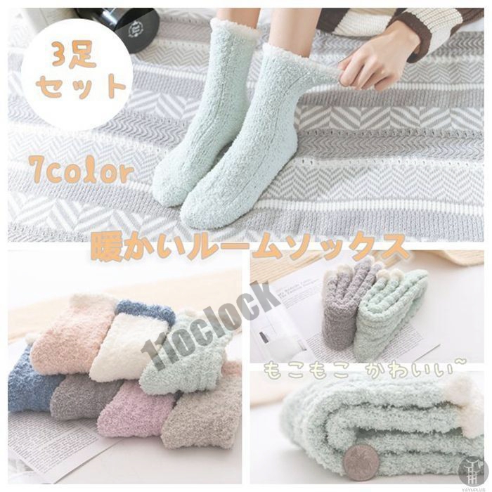 ルームソックス レディース 3足セット ふわふわ もこもこ 靴下 ソックス かわいい プレゼント 冬用 お風呂上りソックス 部屋 室内ソックス 防寒靴下 冷え対策 温かい靴下 防寒 秋冬 全7色