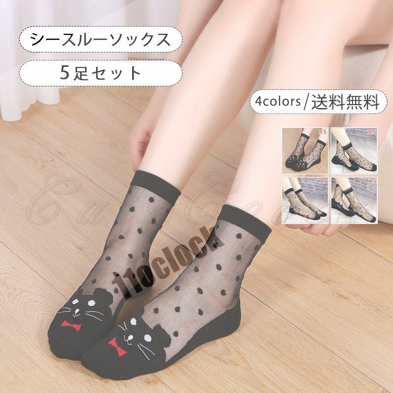 シースルーソックス レディース ショートソックス 5足セット 動物柄 薄手 美脚 涼しい 可愛い 下着 インナー 女性用 オシャレ きれいめ おしゃれ