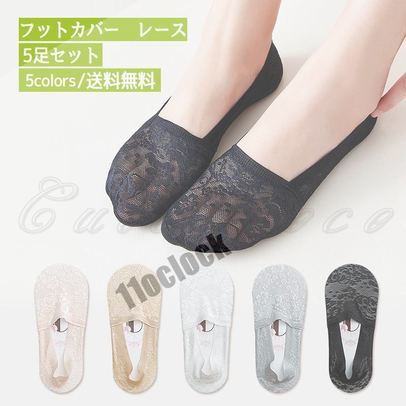 フットカバー スニーカーソックス レディース レース 5足セット 靴下 薄手 メッシュ 脱げない 冷感 涼しい ショートソックス 夏用 快適 きれいめ