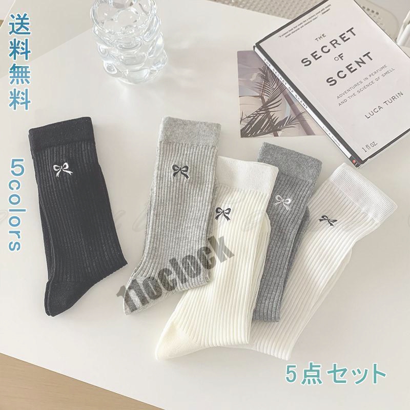 靴下 5足セット レディース ソックス くつした 蝶結び カジュアル ルームソックス春夏秋冬 おしゃれ かわいい 保温 蒸れない 暖かい 冷え対策 ゆったり