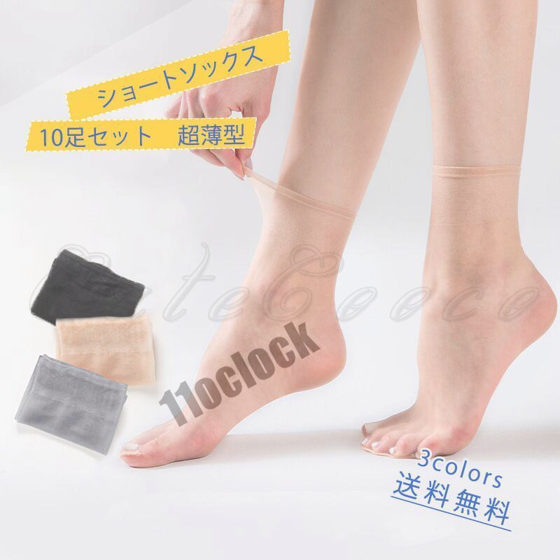 ショートソックス レディース 10足セット クルーソックス 靴下 超薄型 スニーカーソックス 通気性 シースルー 夏用 隠し 無地 きれいめ おしゃれ