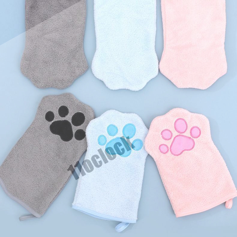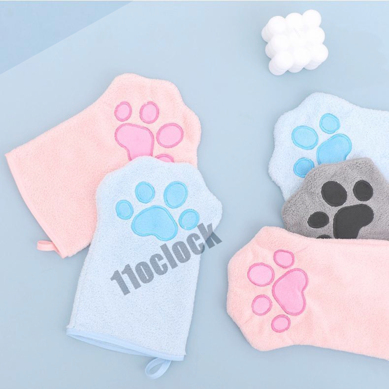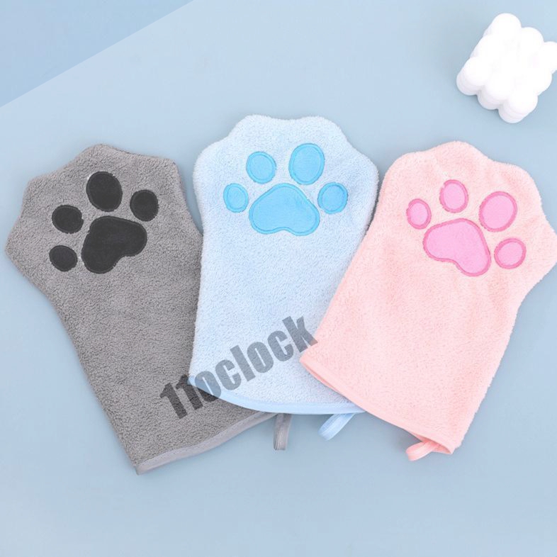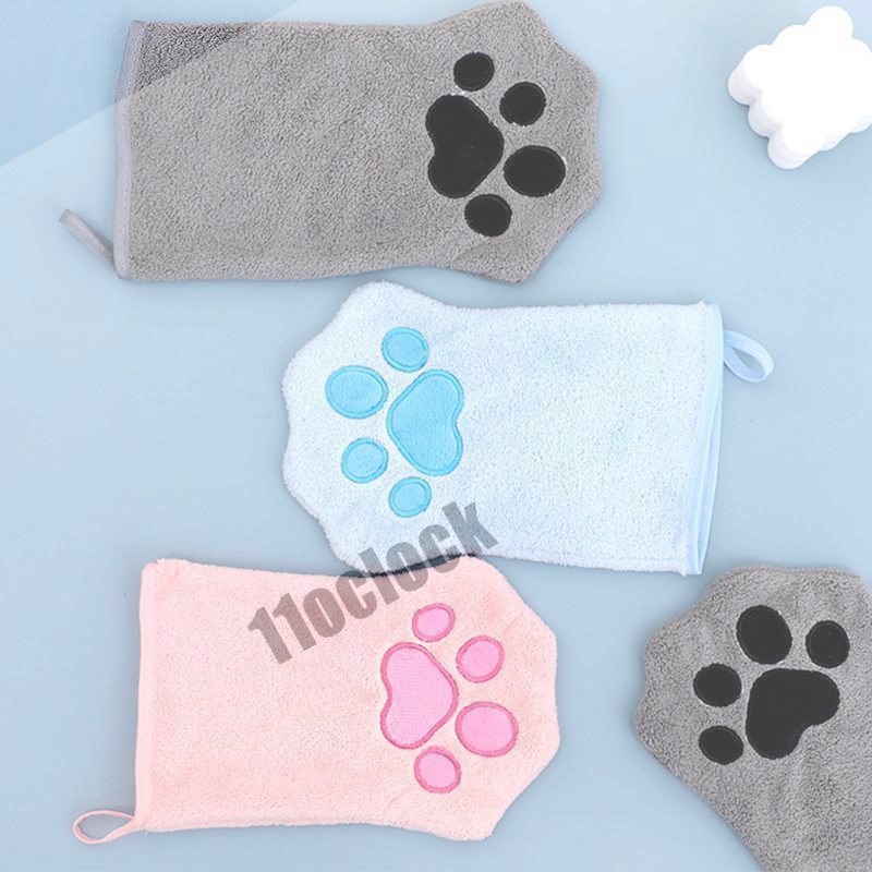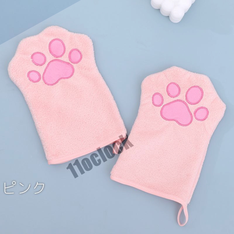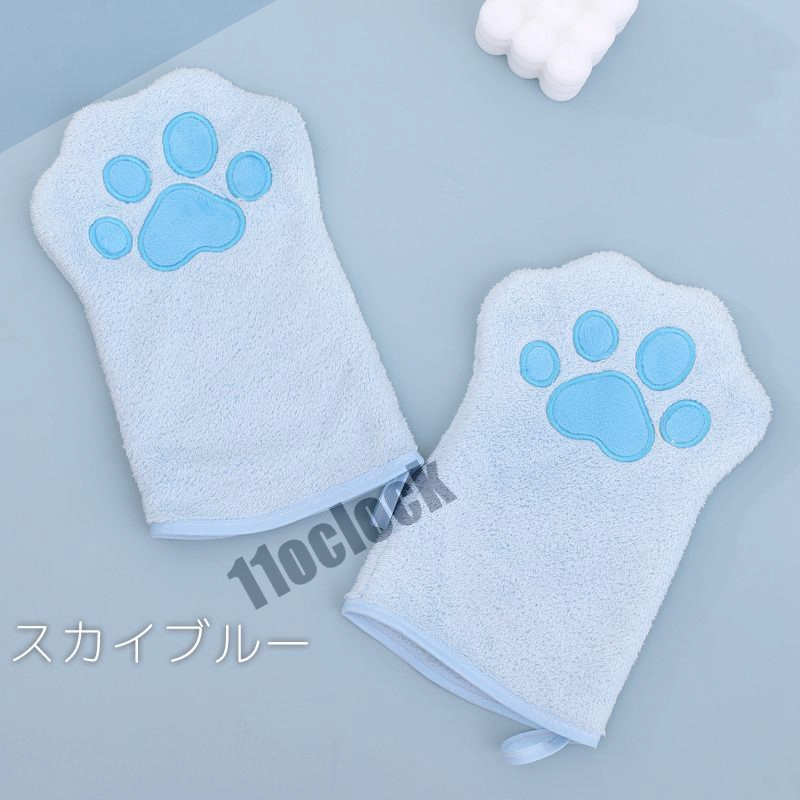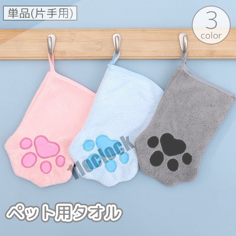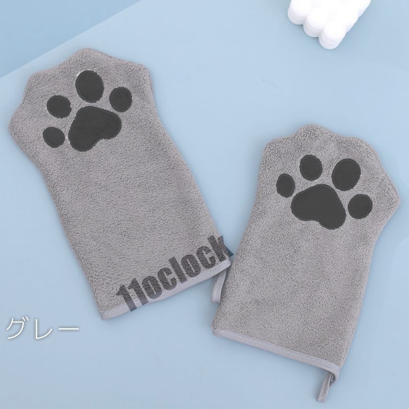 ペット用タオル 単品 片手用 バスタオル ボディタオル 猫 ネコ ねこ 犬 イヌ いぬ 手袋型 グローブ ミトン ループ付き お風呂 体洗い シャワー