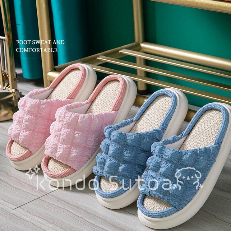ルームシューズ 夏用 スリッパ 前開き メンズ レディース 子供 親子お揃い 麻 洗える 室内 室外