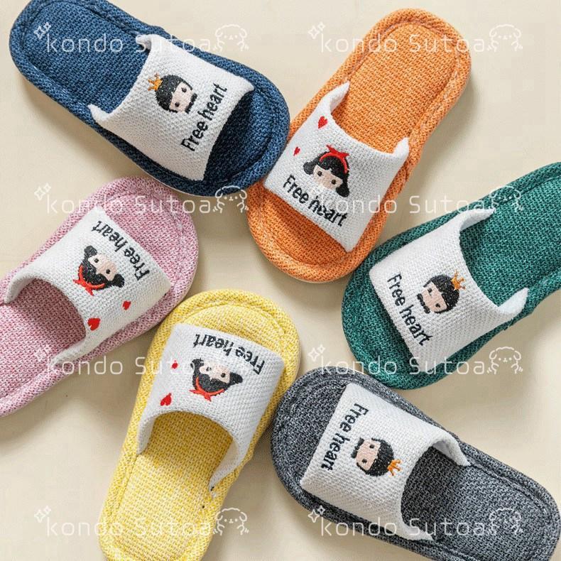 ルームシューズ キッズ スリッパ 子供 夏 親子お揃い 洗える 前開き 麻 トイレ ベランダ 室内 室外