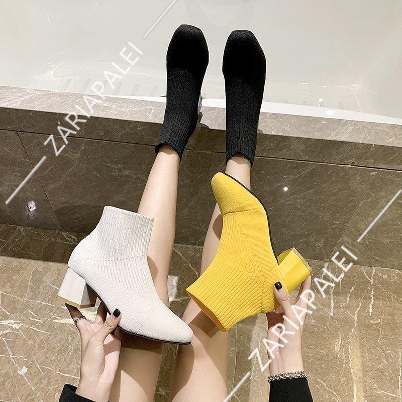 ソックスブーツ レディース ブーツ ストレッチ 美脚効果 スクエアトゥ ヒール 履き易い フォーマル カジュアル キレイめ お洒落 大人 女性 靴