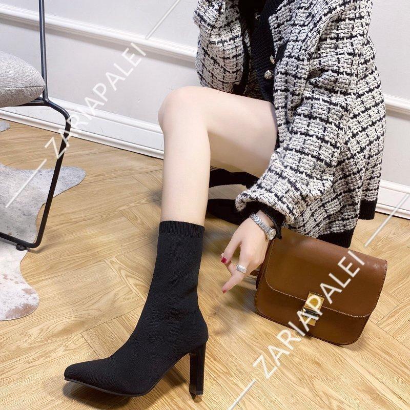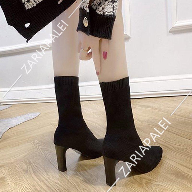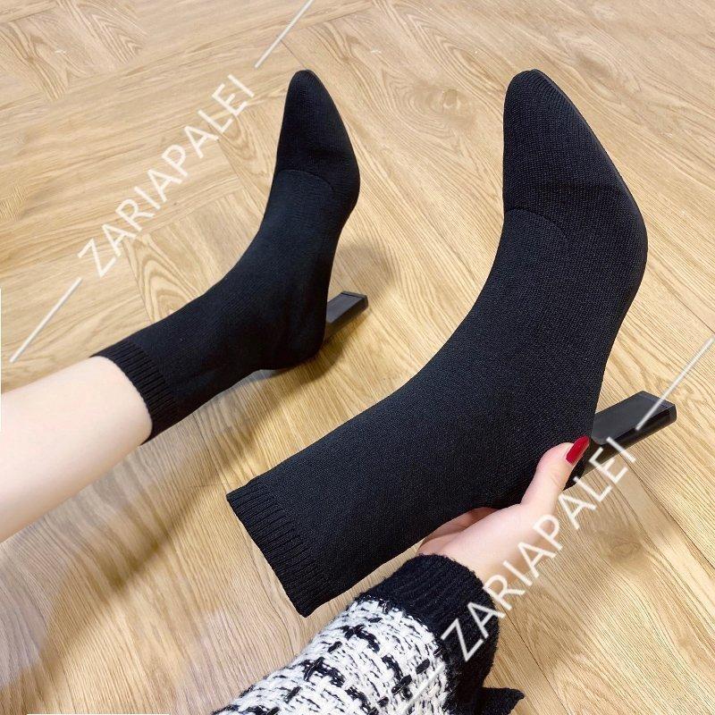 ソックスブーツ レディース ブーツ ストレッチ 美脚効果 スクエアトゥ ヒール 履き易い フォーマル カジュアル キレイめ お洒落 大人 女性 靴