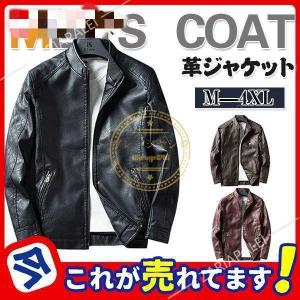 レザージャケット メンズ 立ち襟 革ジャン PUジャケット ライダースジャケット テーラード レザーコート バイクジャケット アウター カジュアル