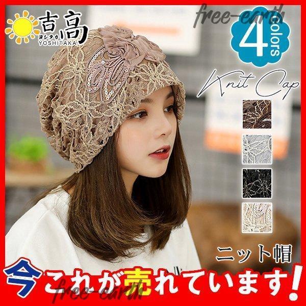 ニット帽 レディース 花柄 レース 帽子 医療用 医療用帽子 就寝用 ニットキャップ 可愛い かわいい おしゃれ アウトドア 旅行 送料無料
