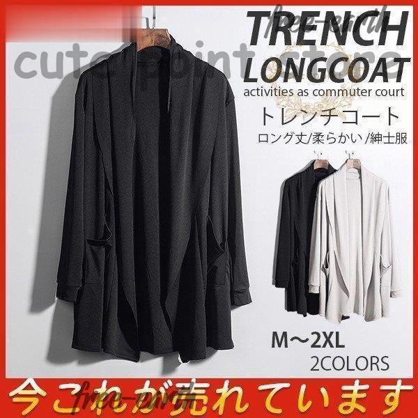 トレンチコート メンズ スプリングコート ロング丈 秋服 薄手 無地 シンプル ジャケット ストレッチ 柔らかい 紳士服 ゆったり 快適 伸びる