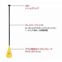 幅広いSUPパドラーに合うミドルサイズのブレード。グラス補強のナイロンブレード。丈夫な2ピースアジャスタブル・パドル。