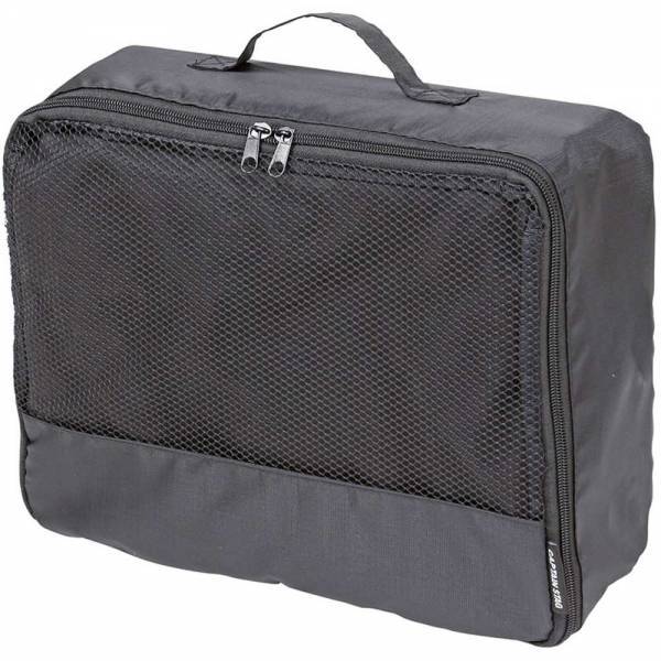 旅行の衣類収納やスーツケース内の整理に便利なアイテム。メッシュ地で中が見えて使いやすいく、使わないときはコンパクトに折りたためます。