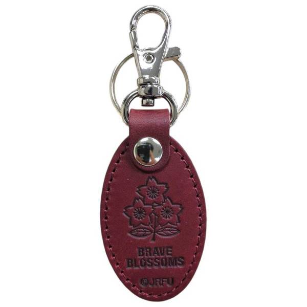 ラグビー日本代表のロゴ、「ブレイブ・ブロッサムズ」がデザインされた高級感のあるレザーキーホルダーです。