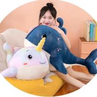 【クジラぬいぐるみ 抱き枕 腰枕 大きい クッション 低反発 子供向け 癒し系 可愛い ブルー オールシーズン|ふわふわで癒されるクジラぬいぐるみ!子供の日や贈り物に最適】