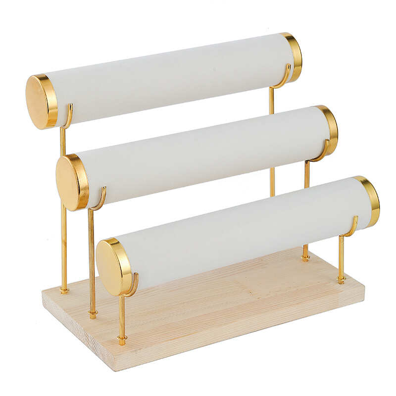 【送料無料】取り外し可能なブレスレットホルダーウォッチスタンド 1~3段階 調整可能 木製エレガントな金縁付きブレスレットディスプレイスタンド 4色選べる