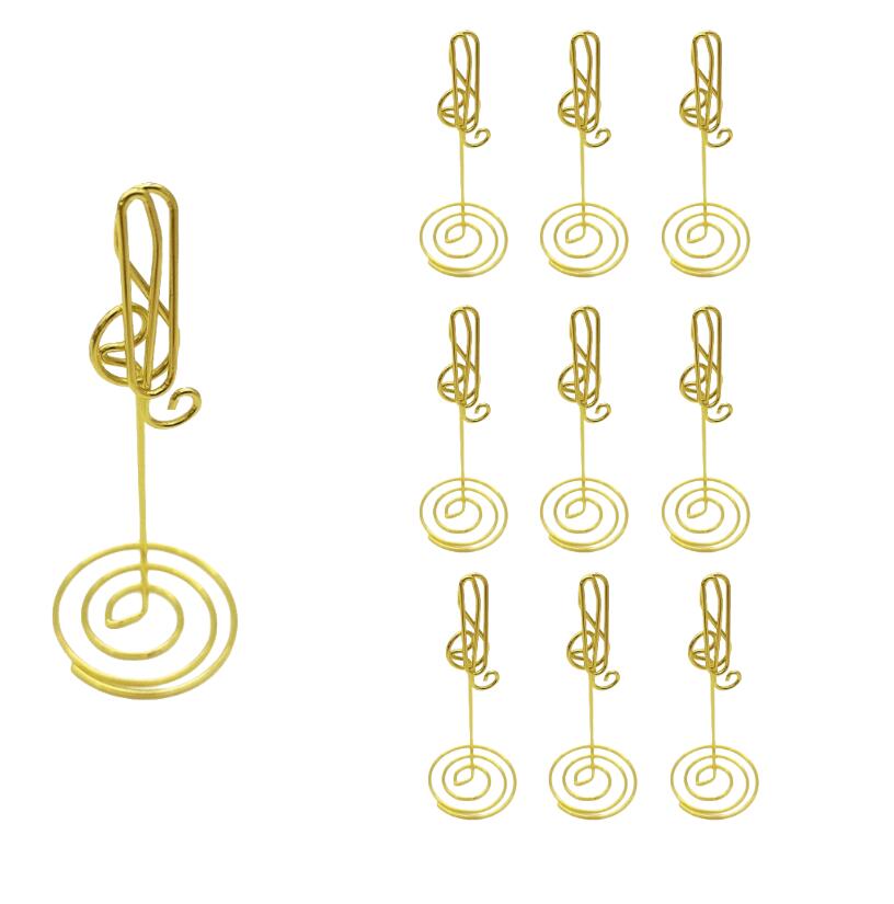 メモクリップホルダー ゴールド 10個セット|名刺・写真・テーブル番号カード対応 デスク用金属スタンド 名前カードホルダー