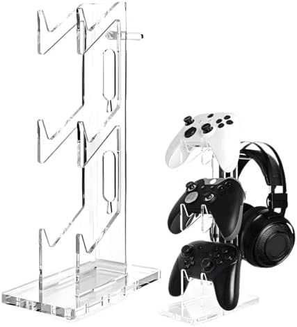 概要説明:3段式のアクリル製コントローラースタンドで、PS4/PS5/Xbox/Switch Proなど幅広い機種に対応。省スペースでスタイリッシュな収納が可能。ヘッドホン専用バー付きで、充電しながら収納も可能です。多機能で高品質なデザインが魅力。
