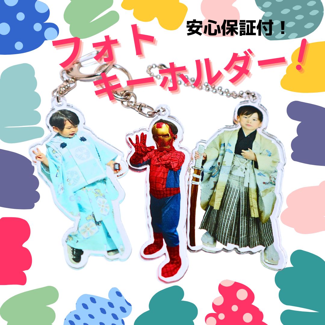 お子様の七五三の写真や可愛い図姿などお好きなお写真でアクリルキーホルダーをお作りいたします。