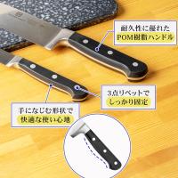 モリブデン・バナジウム配合の高炭素ステンレス鋼の刃は、業務用にも適した高い切れ味と耐久性を兼ね備えています。長時間の使用でも切れ味を保ち、安定した性能を維持します。