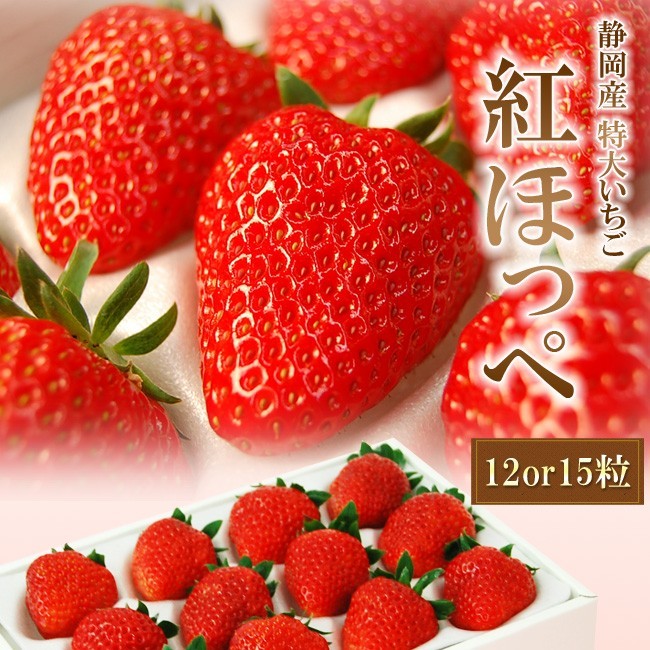 ![]() | 「紅ほっぺ」は静岡県農業試験場において「章姫」に「さちのか」を交配して育成されました。 そして、その中から選抜、育成を行いながら試験栽培を重ね、その5年後に特性が安定していることを確認して育成が完了し、平成14年7月に品種登録されました。 “ほっぺが落ちるほど美味しい”として『紅ほっぺ』と命名されました。 円錐形の大粒で真っ赤な色がとても印象的な外観です。 その美味しさから今や全国にその名を知られるほどになりました。 |