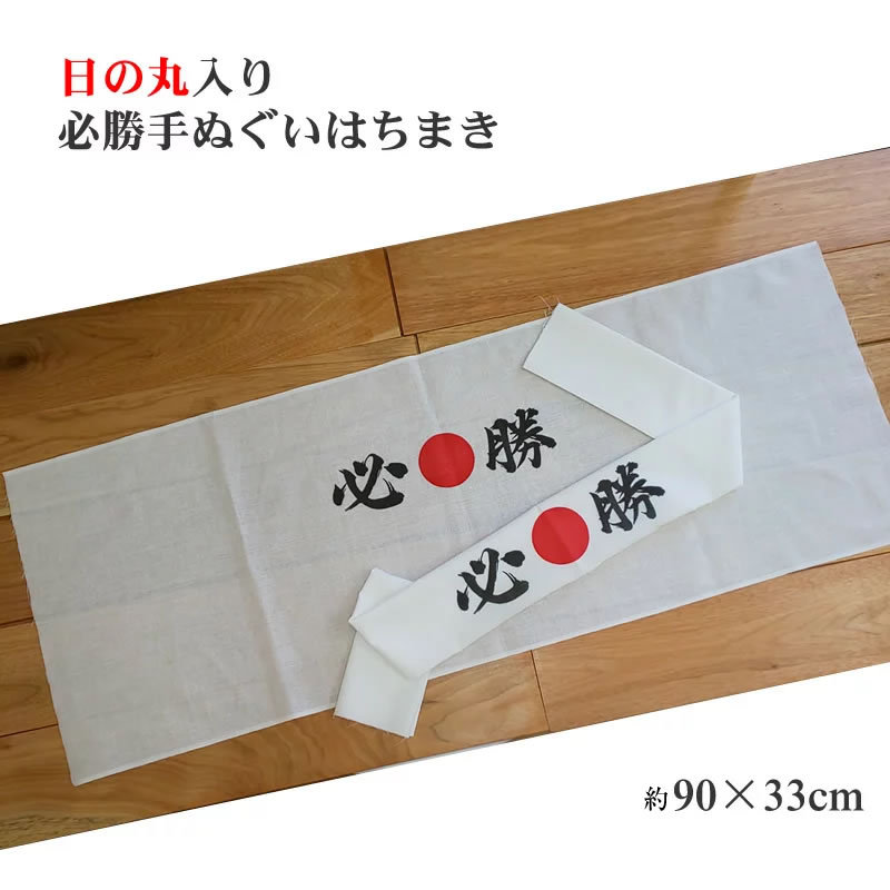 必勝ハチマキ・必勝手ぬぐい(日の丸入り)【約90×33cm】 折り納品で直ぐに使える!はちまき 必勝手拭 選挙 イベント 大会 スポーツ 応援 受験 試験 土産