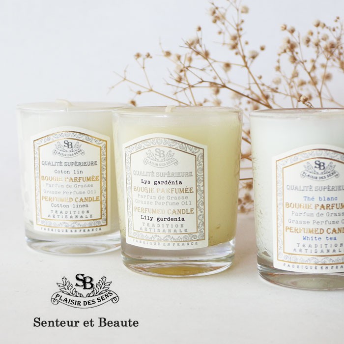 Senteur サンタール・エ・ボーテ グラスキャンドル メール便不可 コットンリネン ホワイトティ リリーガーデニア