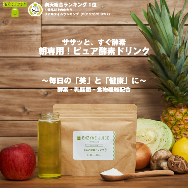 | 原材料名 | 水溶性食物繊維(イヌリン)(タイ製造)、リンゴ果汁パウダー、乳糖、デキストリン、有胞子性乳酸菌、野草発酵エキス(オリゴ糖、糖蜜、てんさい糖、ヨモギ、その他)/クエン酸、香料、甘味料(ステビア、スクラロース)、クチナシ色素、(一部にやまいも・りんごを含む) |