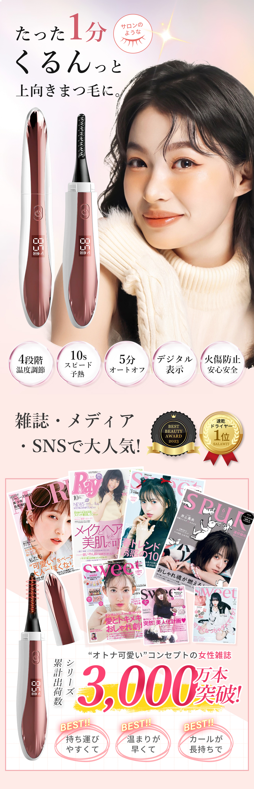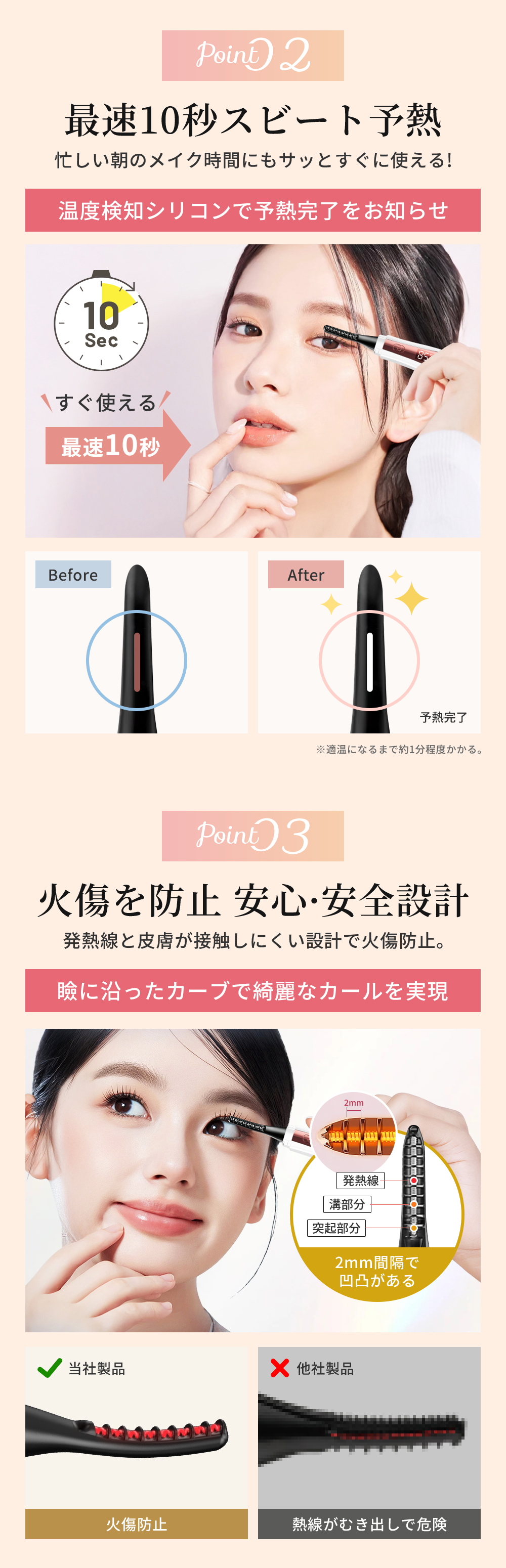 10秒で予熱完了。4段階温度調節×火傷防止設計で、自然なカールを長時間キープ!