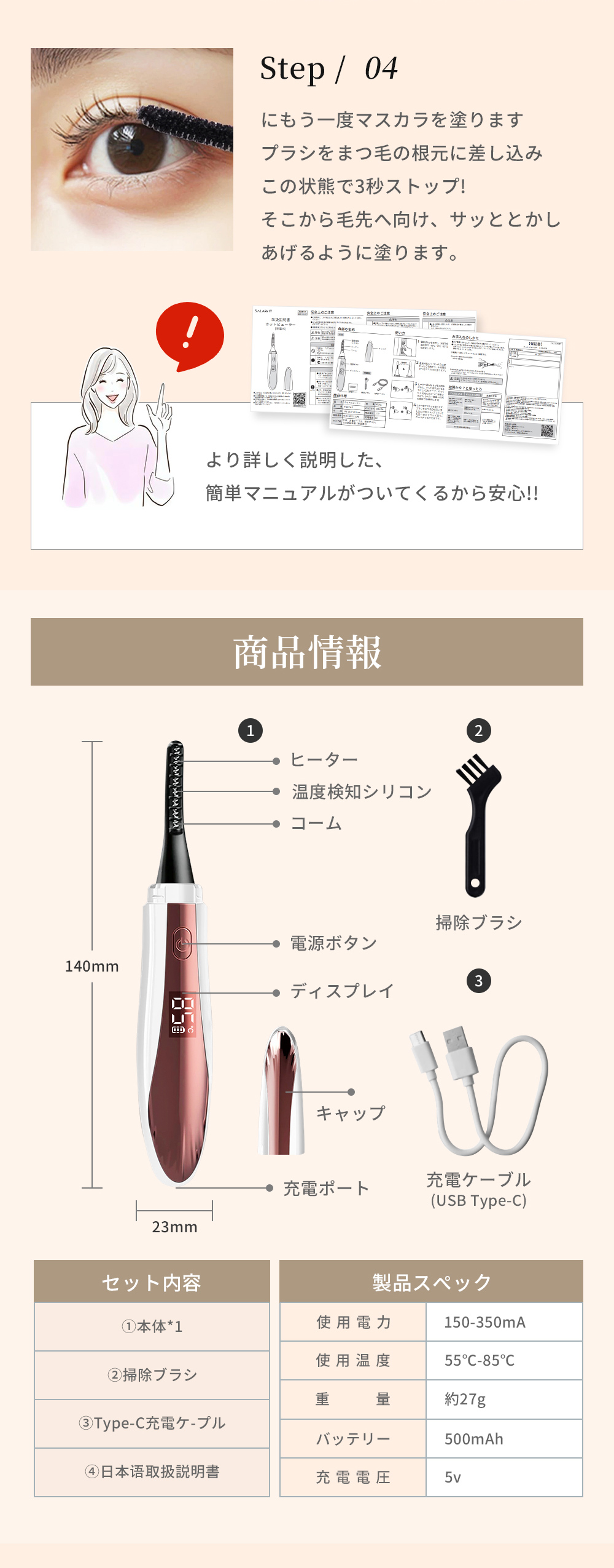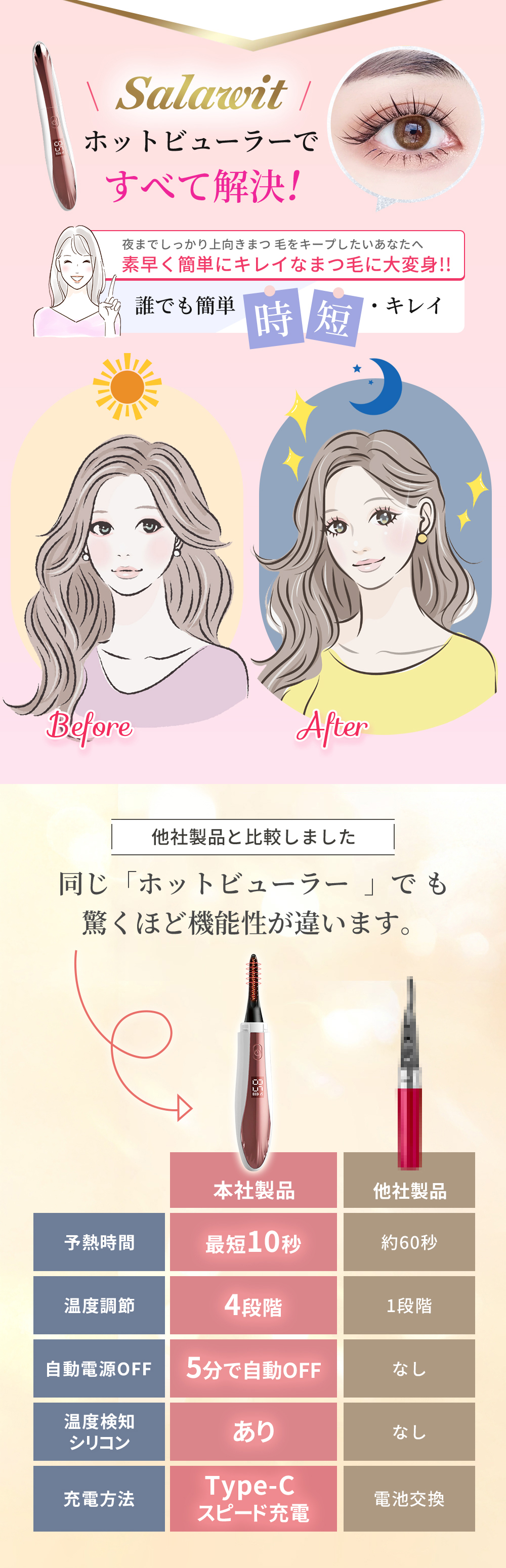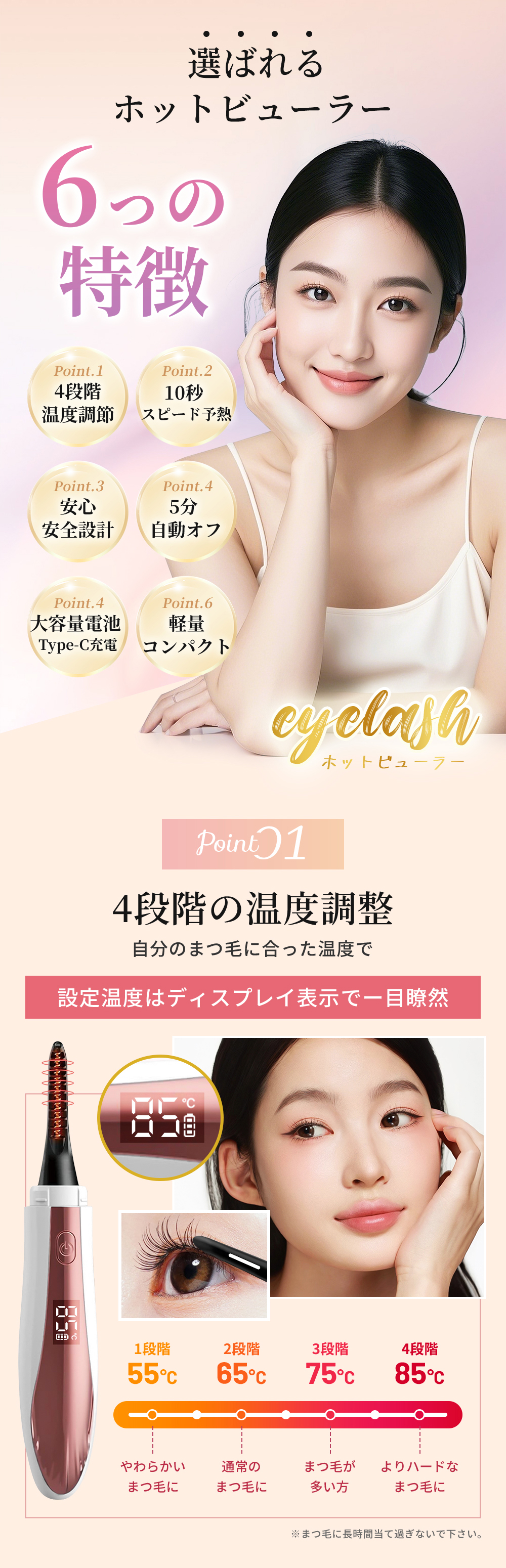 ホットビューラー 最新型! まつげパーマ ホットカーラー ビューラー まつ毛 まつげ マツゲカーラー デジタル表記 USB充電式 55-85℃ 4段階温度調節 自動オフ
