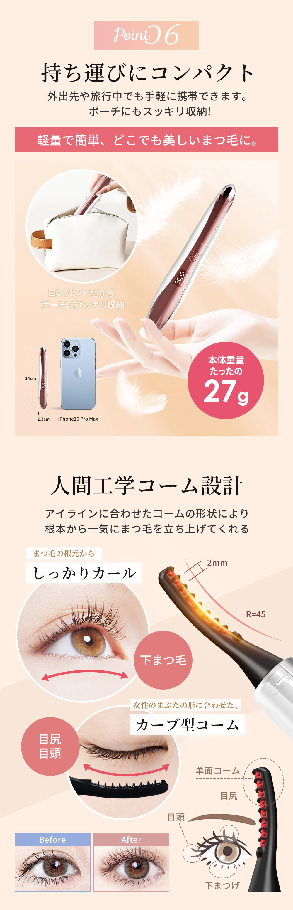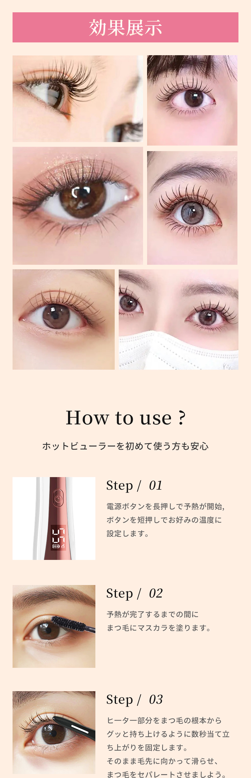 まつげのタイプや仕上がりに合わせて温度を自由に選択。理想のカールを思いのままに。