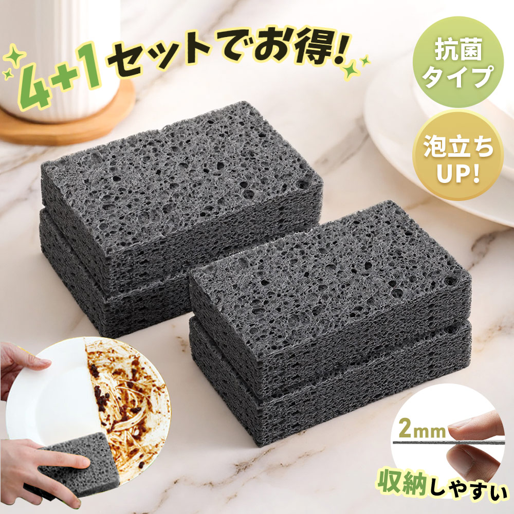 スポンジ 天然木繊維 クリーンスポンジ 5個セット キッチン用スポンジ 台所用スポンジ 掃除 圧縮スボンヅ 食器洗い