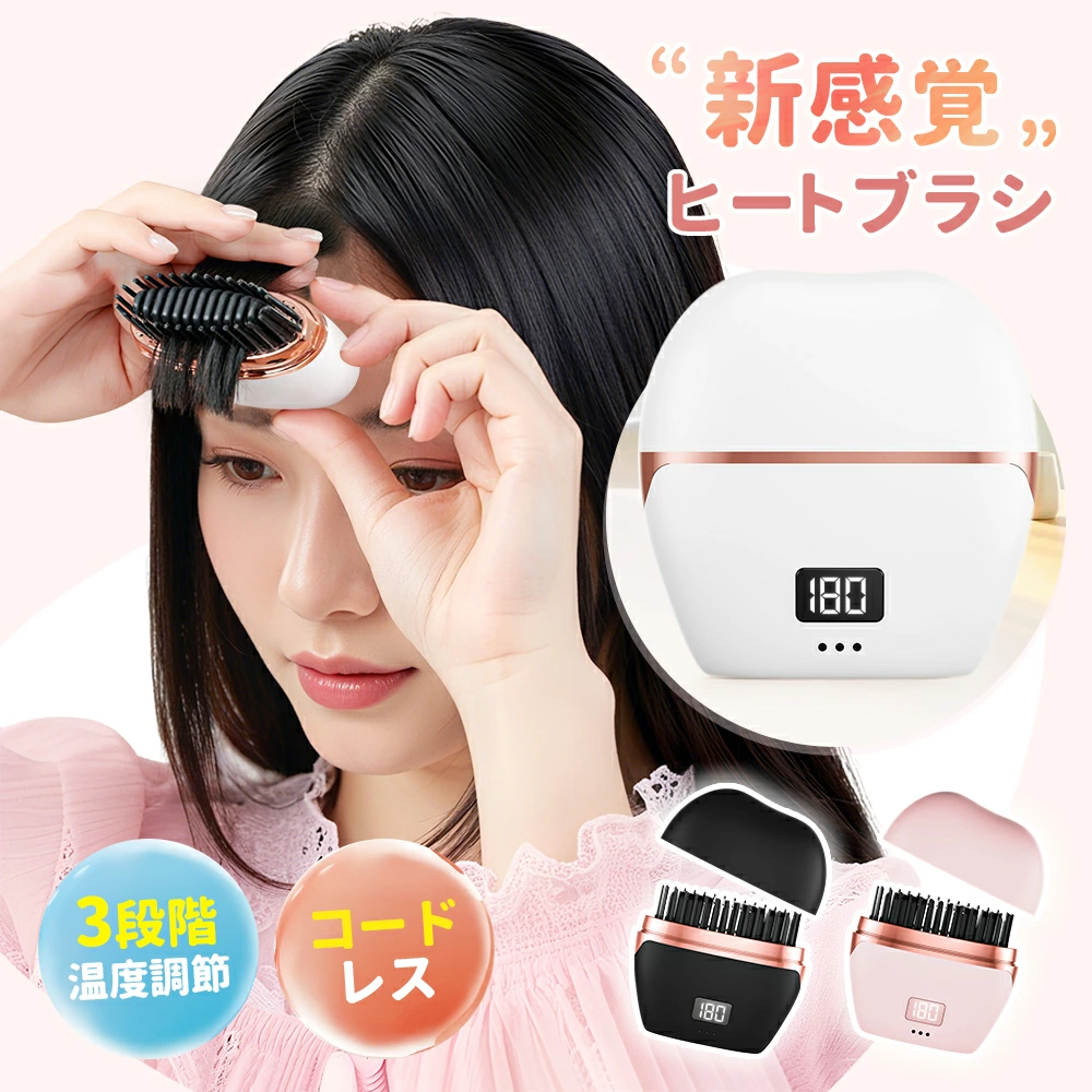 ヒートブラシ 2026年モデルアップ|500円OFF中! ヘアアイロン ブラシ くし コードレス ストレートアイロン 携帯用 デジタル表記 3段階温度調整 MAX180℃ 超軽量