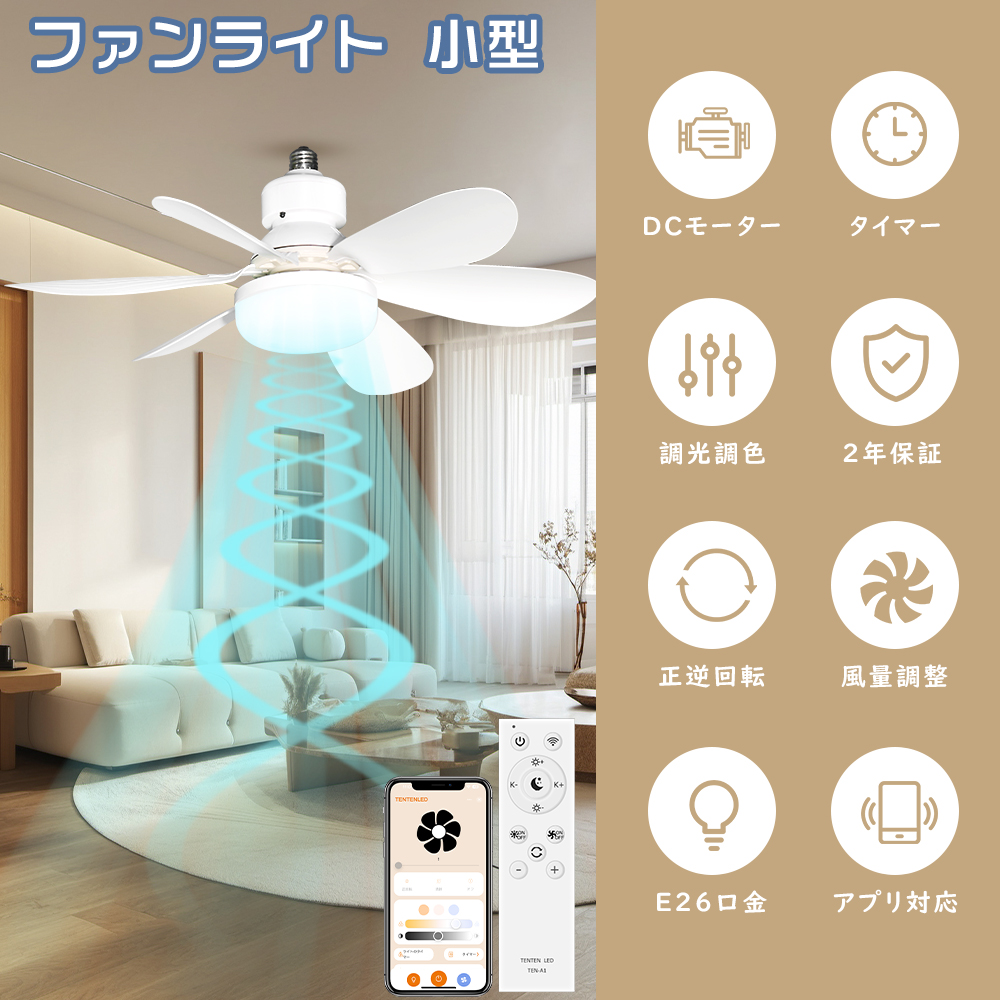 LEDシーリングライト E26口金 サーキュレーター付き 照明付き シーリングファン リビング照明 キッチン照明 部屋干し 冷暖房効果 ファン付きシーリングライト 静音