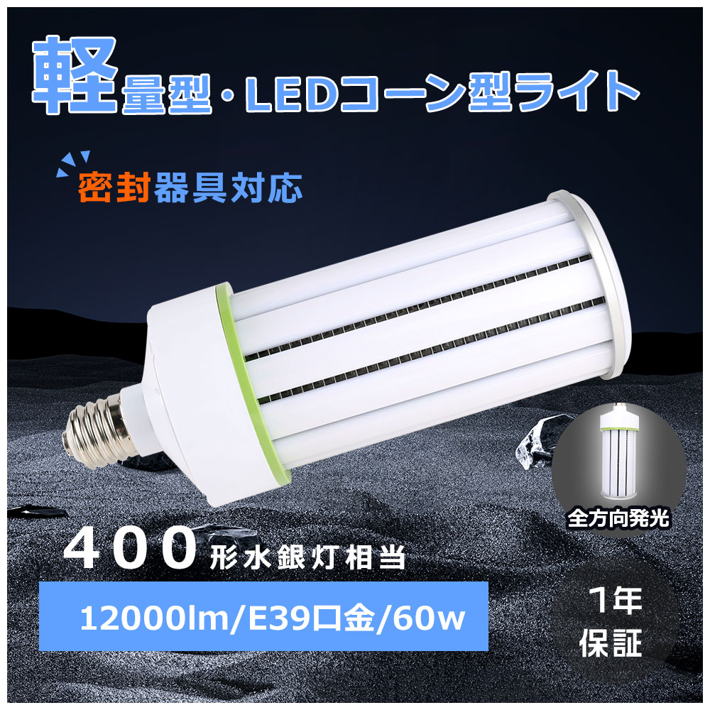 コーンライト LED電球 コーン型 LEDバラストレス水銀灯 軽量タイプ 60w LED E39 投光形LED電球 ビームランプ レフランプ ハイビーム電球 街灯 LED工場灯 倉庫灯
