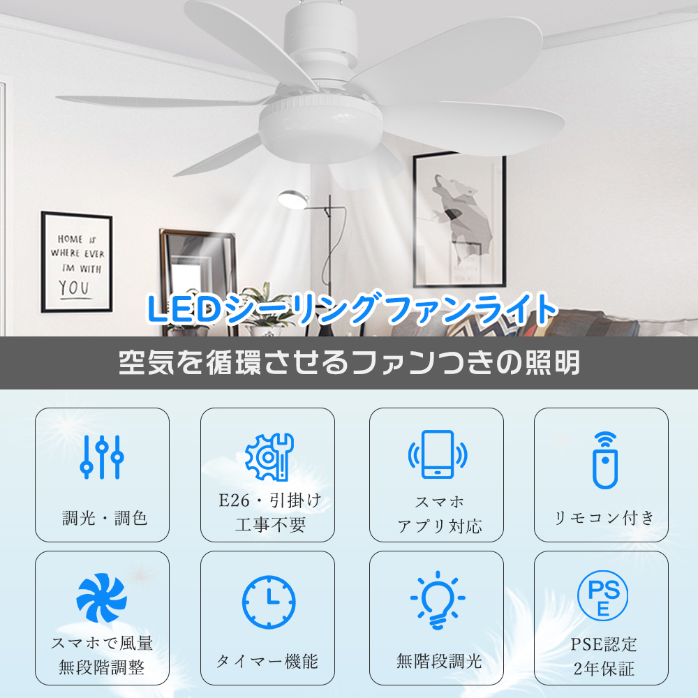 LEDシーリングライト E26口金 サーキュレーター付き 照明付き シーリングファン サーキュレーター付き アプリ リモコン部屋干し 冷暖房効果 シーリングライト 天井照明 ファン付きシーリングライト 静音