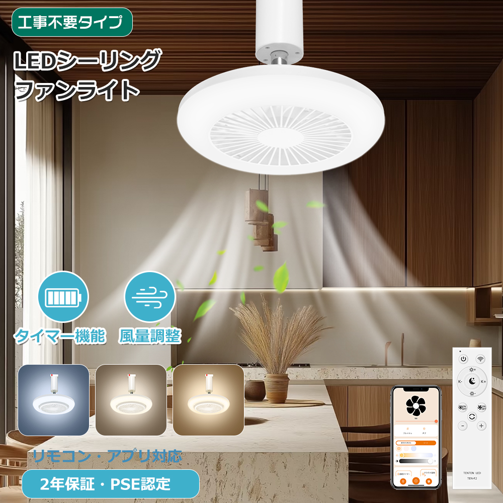 ■【10段階調光&風量調節】スマホアプリ&リモコンで簡単に調光・調色可能。昼光色・昼白色・電球色の3色を10%〜100%まで無段階で切り替え。風量も自由に調節可能!